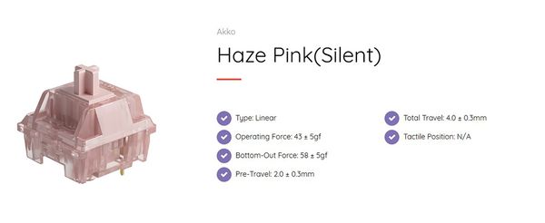 AKKO CS Switch - Haze Pink là dòng công tắc Silent đầu tiên từ AKKO, được thiết kế đặc biệt để mang đến sự yên tĩnh và tập trung cho bạn. Với công nghệ Silent Switch, công tắc này giúp giảm thiểu tiếng ồn khi gõ phím, tạo một không gian làm việc yên bình và ít phiền toái. Bạn có thể tận hưởng những cú gõ phím êm ái mà không làm phiền đến người khác.