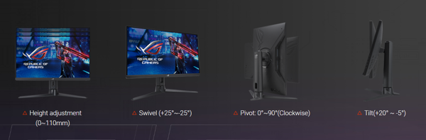 ASUS ROG Strix XG276Q sở hữu vẻ ngoài hiện đại, đẹp mắt với thiết kế công thái học hiện đại. Bạn có thể điều chỉnh chiều cao, xoay, nghiêng một cách linh hoạt để tìm được góc nhìn tốt nhất cho phiên chơi game của mình. Hơn nữa, màn hình cũng được trang bị đầy đủ cổng kết nối thông dụng để bạn thoải mái kết nối với nhiều thiết bị ngoại vi khác, cải thiện trải nghiệm chơi game của mình.