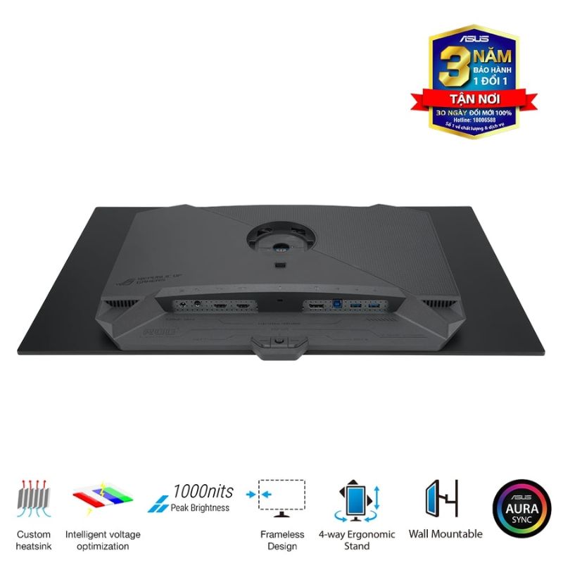 | Phụ kiện đi kèm | Color pre-calibration report DisplayPort cable HDMI cable Power adapter Power cord Quick start guide ROG pouch ROG sticker USB 3.2 cable VESA mount kit Warranty Card |