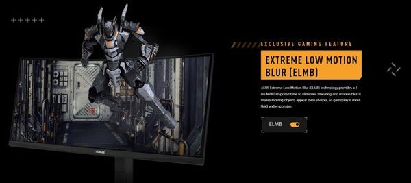 Ngoài ra, để nâng tầm trải nghiệm khi sử dụng và tối ưu nhất. ASUS đã mang đến thị trường một trong những dòng màn hình cong với công nghệ ASUS Extreme Low Motion Blur (ELMB) cung cấp thời gian phản hồi MPRT 1 ms để loại bỏ hiện tượng nhòe và nhòe do chuyển động. Đồng thời, làm các chi tiết chuyển động hiển thị sắc nét hơn, do đó, trò chơi sẽ linh hoạt và nhạy bén hơn.