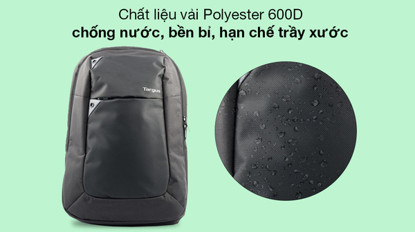 Là vật liệu được sử dụng phổ biến trong sản xuất túi xách, balo và sản phẩm du lịch nên balo làm từ vải Polyester 600D tinh chất Dobby cho độ bền cao, chống nước, chống ẩm tốt, hạn chế trầy xước, dễ dàng giặt sạch khi bị bẩn. Đường may tỉ mỉ, cho balo laptop Targus thêm bền chắc, bảo vệ và cất giữ máy tính và các đồ đạc khác tối ưu.