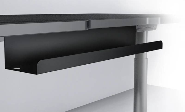 Khay quản lý dây cáp với nắp che được thiết kế tinh tế ẩn dưới mặt bàn, cung cấp nơi lưu trữ dây cáp tiện lợi và ngăn nắp, giúp giữ không gian bàn làm việc luôn gọn gàng, đẹp mắt.