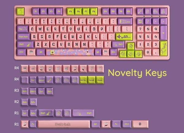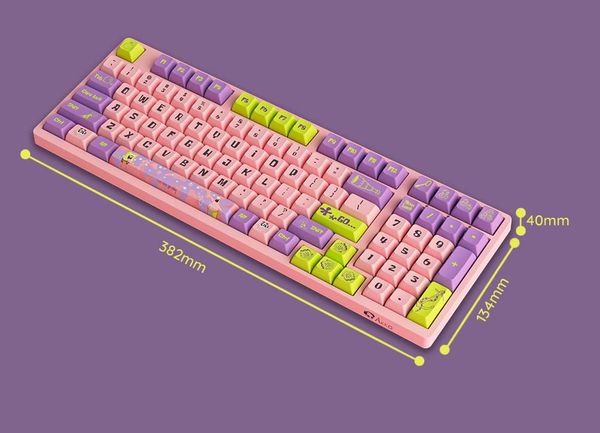 AKKO 3098S Patrick với layout 98 phím là phiên bản rút gọn của bàn phím Full-size. Bàn phím này vẫn có cụm phím điều hướng và dãy numpad nhưng được thiết kế sát gần nhau; phím mũi tên được đặt nằm ngày dưới nút Enter và nút Numpad ép sát vào cụm phím mũi tên. Điều này đã tạo nên một mẫu bàn phím có vẻ ngoài độc đáo, đầy đủ phím nhưng chiếm ít diện tích hơn. Bàn phím được thiết kế và lấy màu chủ đạo theo tạo hình nhân vật SpongeBob trong bộ phim hoạt hình nổi tiếng của Mỹ: “SpongeBob SquarePants“.