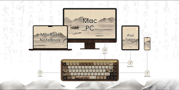 AKKO MU01 Mountain Seclusion: Phiên bản giới hạn được lấy cảm hứng từ những bức tranh thủy mặc các ngọn núi miền sơn cước của Trung Quốc. Thiết kế sang trọng vỏ phím được làm bằng chất liệu đặt biệt từ gỗ óc chó cao cấp. Keycap là bài thơ hoàn chỉnh “Autumn Twilight in the Mountain Abode” – (chạng vạng thu trên núi).