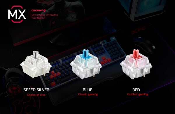 Cherry là tên của thương hiệu sản xuất công tắc cơ học được đánh giá gần như tốt nhất hiện nay, với độ bền cũng như cảm giác gõ trên từng công tắc. Bàn phím cơ có dây Adata XPG Summoner sử dụng 100% công tắc cơ học Cherry MX RGB, với hiệu ứng LED sáng hơn và chuyển màu mượt hơn so với các dòng công tắc cơ học thông thường.