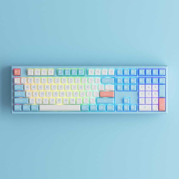 AKKO MonsGeek MG108 Doll Of Princess là chiếc bàn phím cơ có dây nhưng vẫn được trang bị LED nền RGB rất đẹp. LED nền theo dạng dán SMT với nhiều chế độ và hạn chế cấn Switches
