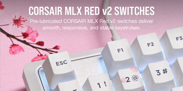 Trang bị switch Corsair MLX Red V2, bàn phím cơ Corsair K70 Core SE RGB Cherry Blossom CH-9109C1E-NA mang đến cảm giác gõ phím mượt mà, nhẹ nhàng và phản hồi nhanh, giúp bạn dễ dàng thực hiện các thao tác trong game hay công việc.