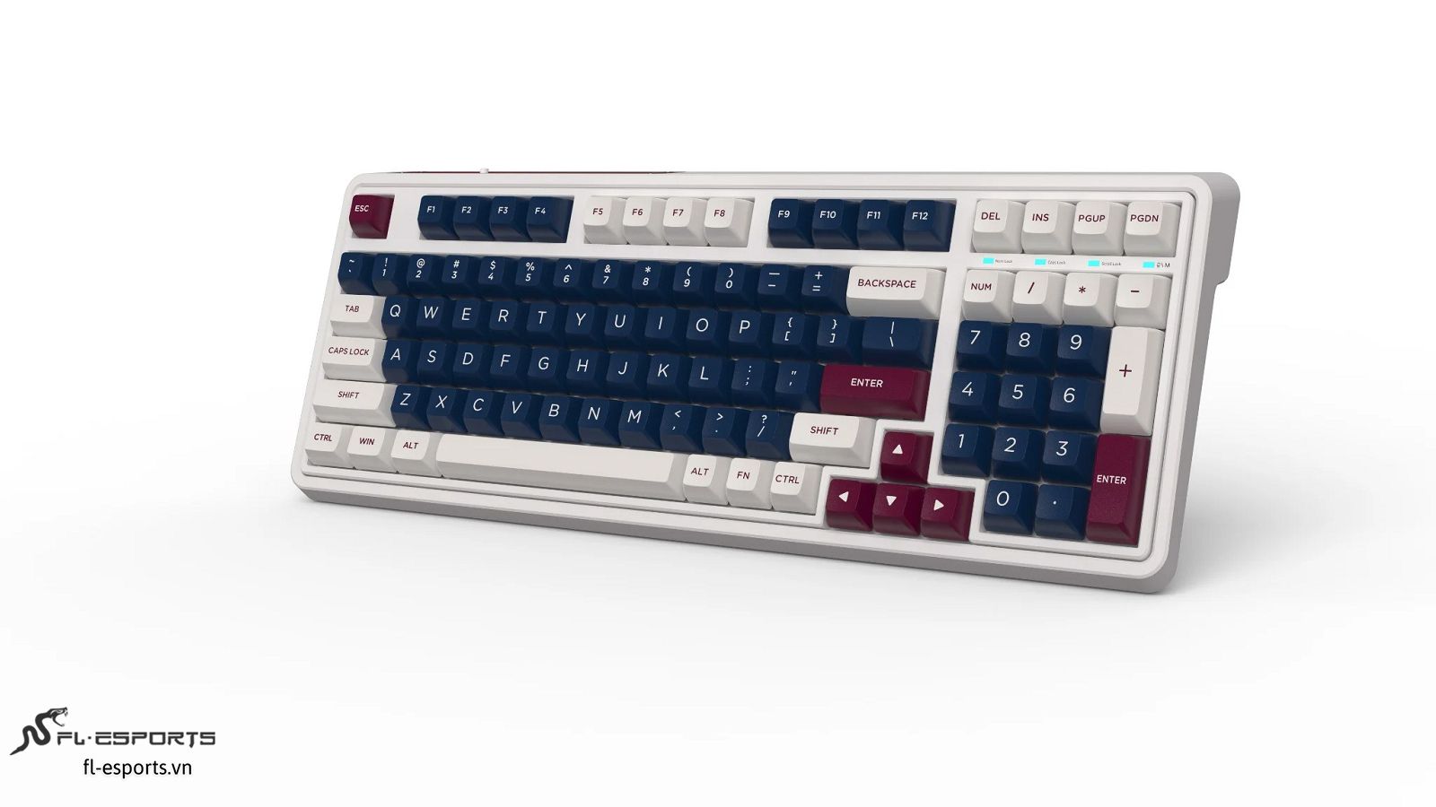FL-ESPORT CMK98SAM Metal Heart sử dụng bộ Keycaps FSA Profile ngoài ra chất liệu nhựa PBT và công nghệ in 2 lớp có độ hoàn thiện rất cao, cảm giác gõ cực kỳ tốt