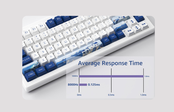 Cung cấp tốc độ phản hồi 8000Hz (0.125ms), cải tiến này tăng dữ liệu truyền tới máy tính tới lên gấp 8 lần, đảm bảo kiểm soát độ trễ gần như bằng 0 (8000Hz chỉ khả dụng ở chế độ có dây USB-C (1Khz với 2.4G / 125Hz với Blueooth)
