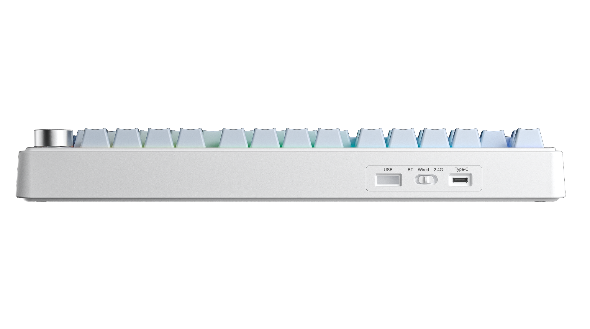 Một núm xoay Knob hợp kim nhôm được trang bị bên góc phải bàn phím, hỗ trợ chuyển đổi nhanh chóng giữa chế độ giải trí và văn phòng, điều chỉnh âm lượng, chuyển nhanh hiệu ứng ánh sáng.