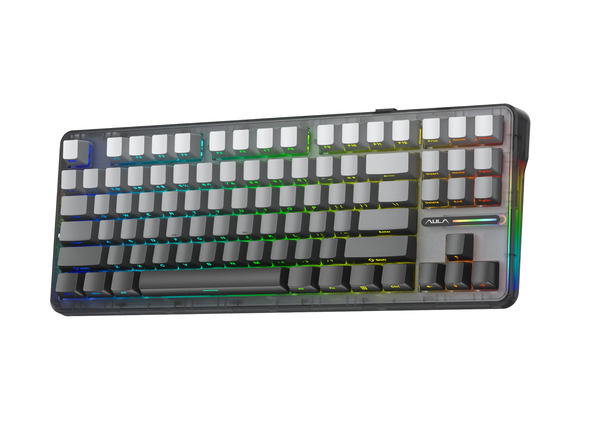 Bàn Phím Cơ Không Dây- AULA F87 Pro Gradient Black / 3 Mode / Grey Wood V4 Switch