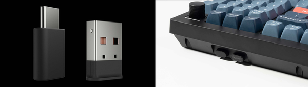 Để có trải nghiệm kết nối không dây Wireless 2.4Ghz tốt hơn, Keychron V5 Max sẽ được trang bị sẵn 2 đầu thu Type-C và Type-A