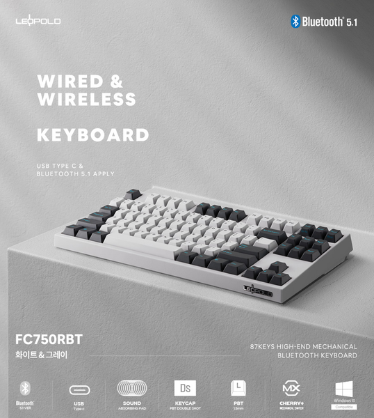 thegioigear.vn - Bàn phím cơ không dây Leopold FC750RBT PD White Dark Grey - 100% Cherry MX Swiches