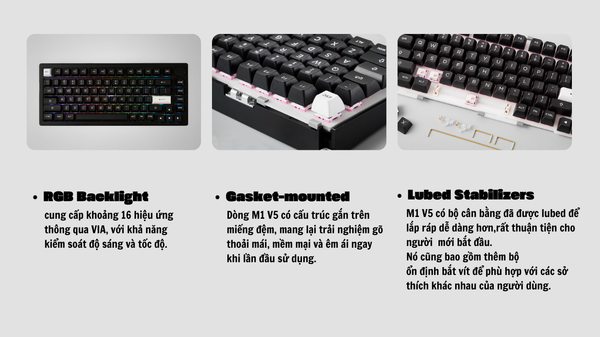 Cấu trúc Gasket Mount: Giảm tiếng ồn, tăng độ êm ái và giảm lực nhấn phím.