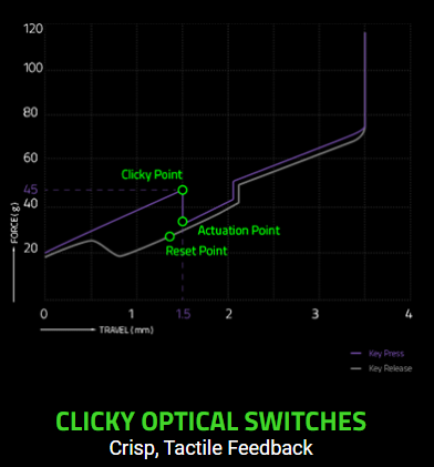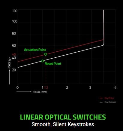 Razer Optical Switch có 2 phiên bản cho trải nghiệm phù hợp với nhu cầu của từng người dùng: Linear Red Switch và Clicky Purple Switch