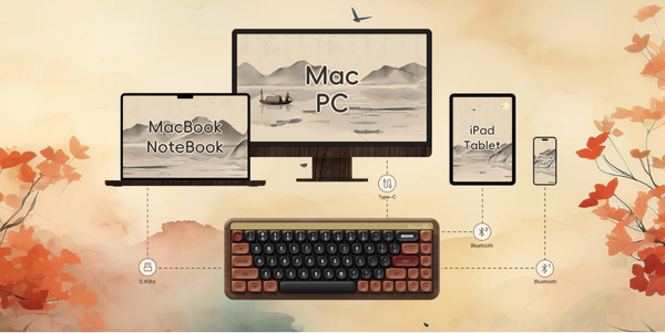 MU01 Mountain Seclusioncó thể được kết nối với nhiều thiết bị thông qua bluetooth 5.0, multi-host 2.4GHz (có bộ thu) và Type-C với khả năng chuyển đổi dễ dàng.Với tổ hợp phím Fn+E/R/T.