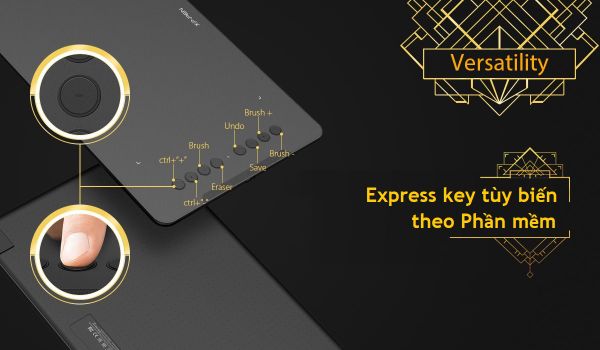 Deco 01 v2 Android trang bị 8 phím thao tác nhanh Express Key có thể tùy chỉnh mọi chức năng. Hình dáng tròn vừa vặn với ngón tay khi bấm và tạo do bảng vẽ dáng vẻ thanh thoát, sang trọng. Trên nút có ngạch để bạn dễ dàng tìm thấy vị trí nút bấm.