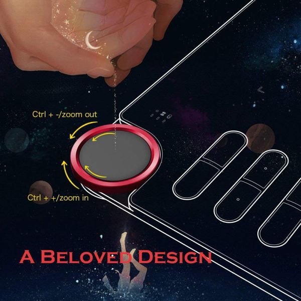 Phím xoay màu đỏ được gia công bằng vật liệu nhôm phủ một lớp Oxi hóa điện phân Anốt đem lại vẻ ngoài hoàn mỹ như lụa satanh vậy. Thiết kế vừa tay người dùng và hoàn toàn khác biệt với thiết kế các mẫu bảng vẽ truyền thống khác. Sự đa năng là một điểm nổi bật khác của nút Dial khi bạn có thể sử dụng cho nhiều chế độ: