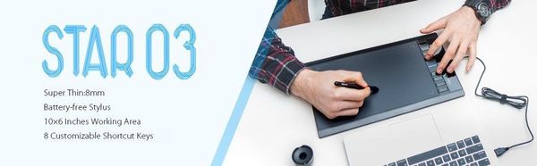 Khả năng sáng tạo rộng mở với XP-Pen Star03, bảng vẽ điện tử chuyên nghiệp 12 inch (10x6 inch). 8 phím tắt tùy chỉnh tính năng giúp thao tác nhanh chóng và tăng hiệu quả công việc. XP-Pen Star03 mỏng chỉ 8mm, thật gọn ghẽ và tiện lợi khi muốn kẹp chung với chiếc laptop để sẵn sàng cùng bạn sáng tạo ở bất cứ đâu bạn muốn. Bản nâng cấp với lực nhấn 8192 mức cùng độ nhạy 266 RPI giúp biến Star 03 phiên bản 2 thành trợ thủ đắc lực của bạn với mức giá siêu hấp dẫn so với những giá trị tuyệt vời mà một chiếc bảng vẽ có thể đem lại!