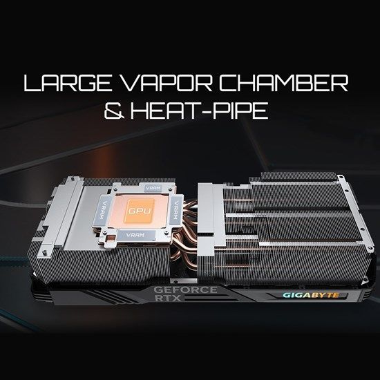 Bên trong GIGABYTE GeForce RTX 4060 Ti GAMING OC 8G là hệ thống tản nhiệt được chú trọng. GPU và VRAM được bao quanh bởi ống dẫn nhiệt đồng nguyên chất, tiếp xúc trực tiếp với các khu vực xử lý trung tâm để tối ưu hóa hiệu quả.