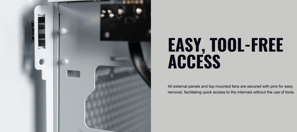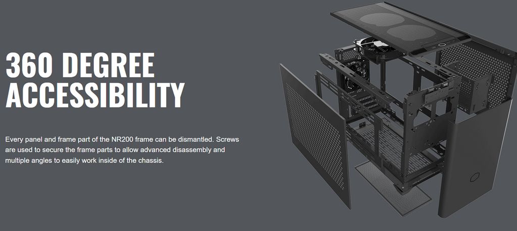 Khả năng tiếp cận các linh kiện bên trong từ mọi góc độ. Các thành phần bên trong NR200 có thể tháo rời, thuận tiện cho việc lắp đặt.