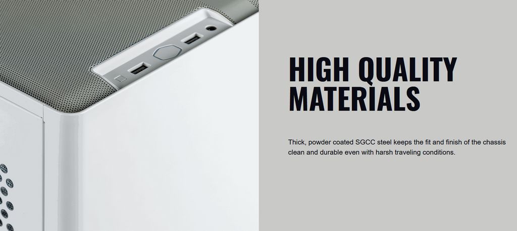 Chất liệu sử dụng rất chắc chắn và cao cấp. Lớp vỏ và sơn dày dặn sẽ giữ cho PC của bạn có vẻ ngoài luôn sạch sẽ và bền bỉ