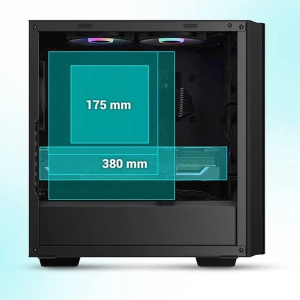 Case Deepcool CH510 Mesh Digital tối đa hóa tiềm năng với cấu hình linh hoạt đáp ứng nhiều kích thước mainboard khác nhau. Với không gian cho GPU lớn lên đến 380mm và bộ làm mát CPU cao tới 175mm, Case Deepcool CH510 Mesh Digital cung cấp không gian rộng rãi mà không quá cồng kềnh.