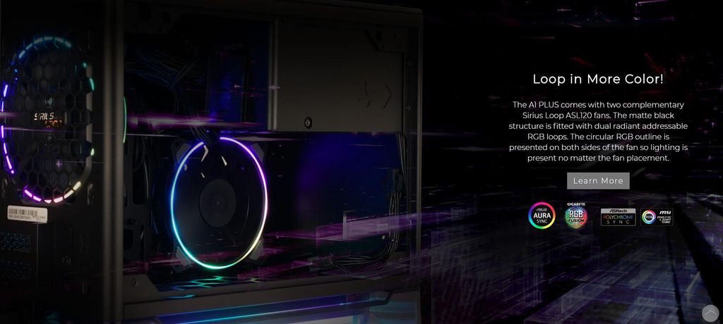 INWIN A1 PLUS đi kèm 2 quạt 120mm. Các vòng RGB khi đi kèm quạt sẽ đem lại các hiệu ứng xoay cùng quạt độc đáo.