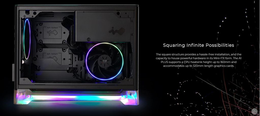 Cấu trúc của InWin A1 có thể tháo lắp dễ dàng mà không cần các công cụ hỗ trợ. Không gian bên trong vừa vặn cho các cấu hình cao cấp. Sản phẩm hỗ trợ lắp đặt tản nhiệt với chiều cao lên tới 160mm và chiều dài của card đồ hoạ 320mm.