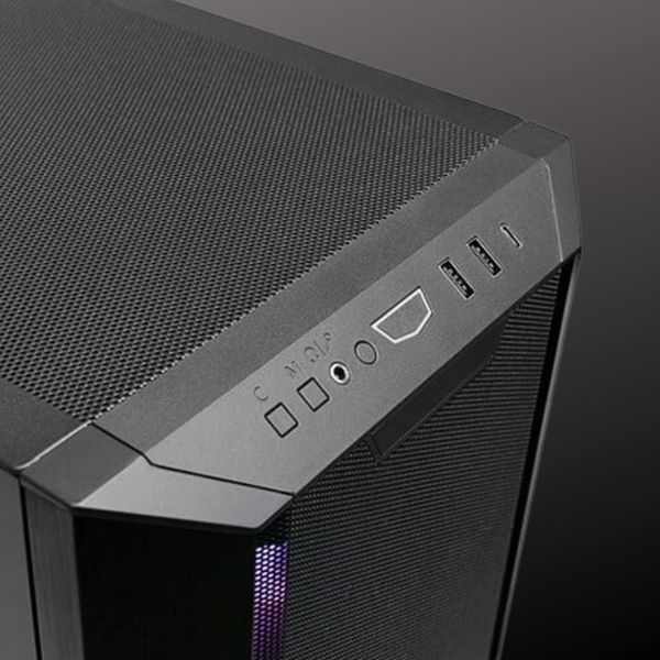 Cổng giao tiếp I/O mặt trước | 1 x Power Button 1 x Reset Button 1 x Light Color Button (C) 1 x Light Mode Button (M) 2 x USB 3.0 1 x USB Type C 1 x Audio |