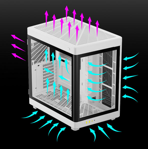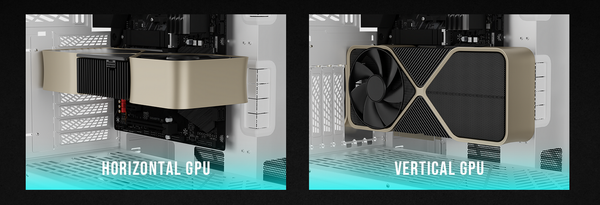 Vỏ máy sử dụng các bệ mô-đun để xoay vỏ máy từ dọc sang ngang một cách liền mạch đồng thời tận dụng luồng không khí chắc chắn và ổn định. Định hướng mới cung cấp giao diện mới hơn và mở ra trải nghiệm xây dựng cấu hình hoàn toàn mới.