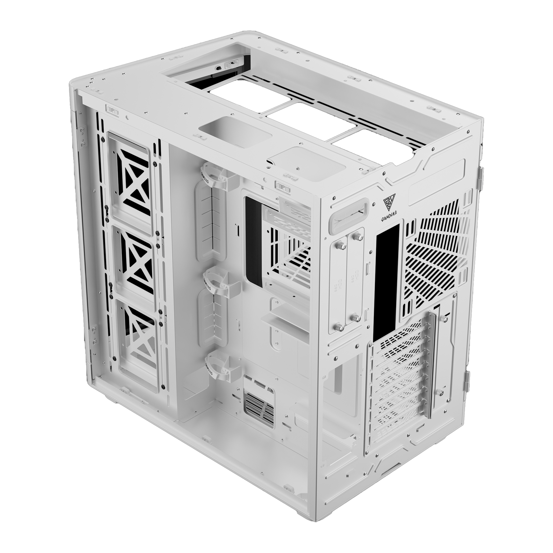 NESO P1 White có các khe cắm PCIe xoay 8x8 và không gian bên trong lên đến 426mm cho phép lắp đặt linh hoạt GPU series 4000 nằm ngang hoặc dọc