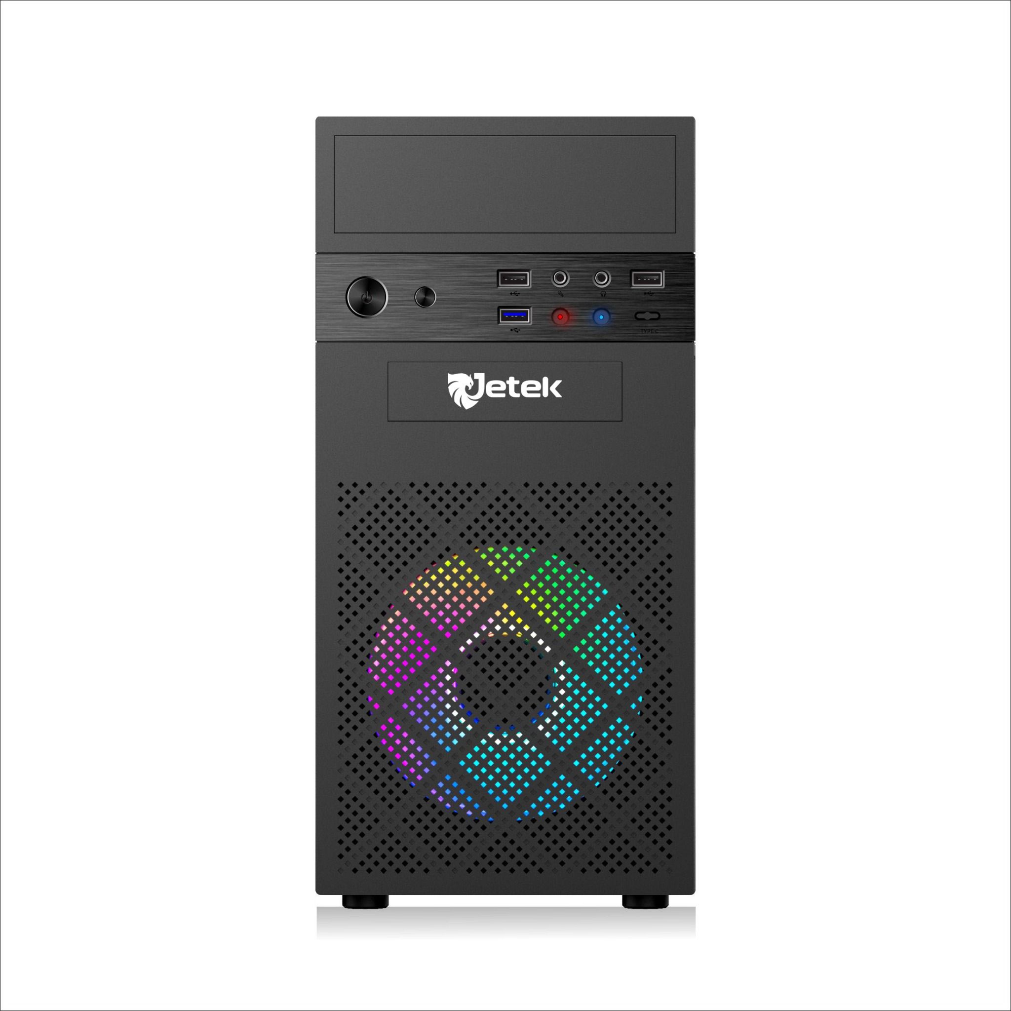 Case JETEK GAME V12 được bao phủ với độ dày 0.4mm SPCC Black Coating. Phía trước được làm bằng nhựa ABS màu đen, lỗ làm mát. Bên trái được làm bằng Acrylic.