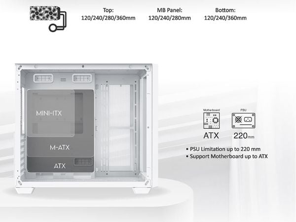 | Hỗ trợ Mainboard | ATX, Micro-ATX, ITX |