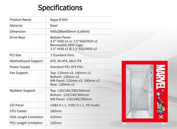 Xigmatek Aqua III MV – thế hệ mới của dòng case cao cấp Aqua, thiết kế được lấy cảm hứng từ các nhân vật của hãng phim Marvel. Xigmatek Aqua III MV mang đến không gian rộng rãi cho bạn cùng sự lựa chọn linh hoạt trong việc cải tạo và nâng cấp hệ thống của mình. Mẫu case máy tính này được thiết kế đặc biệt để phù hợp với mọi nhu cầu của game thủ và những người yêu công nghệ.
