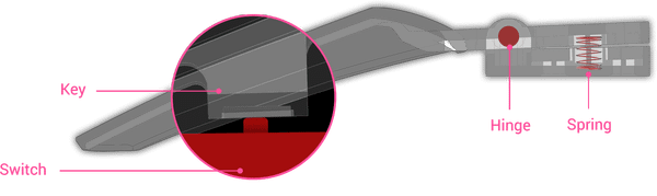 Di chuyển ngắn hơn có nghĩa là nhấn chuột nhanh hơn, đó là lý do tại sao các kỹ sư của Asus trang bị cho ROG Strix Impact II các nút xoay. Cơ chế sử dụng lò xo và bản lề kim loại để cân bằng các phím và giảm thiểu khoảng cách giữa các nút và công tắc. Kết quả là việc di chuyển tối thiểu và quay trở lại nhanh chóng, đảm bảo tốc độ tuyệt vời, khả năng phản hồi và tính nhất quán với mỗi lần nhấn.