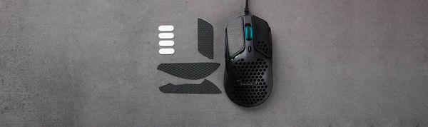 Đối với những người muốn có nhiều quyền kiểm soát hơn và cảm giác thoải mái hơn, đã có băng nhám đi kèm cho hai cạnh bên của chuột và cả nút chuột trái và phải.