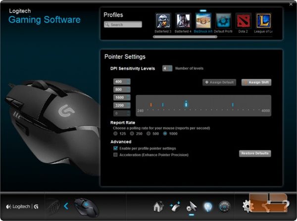 Logitech G402 Hyperion Fury thiết lập với 4 mức DPI mặc định và bạn có thể hoàn toàn thiết lập riêng sao cho phù hợp với lối chơi cá nhân nhất. Ngoài ra điểm đặc biệt trên chiếc chuột Logitech G402 này chính là nút chuyển đổi DPI tức thời, bạn có thể bắn tỉa kẻ địch với mức DPI 250 và có thể rút lui nhanh chóng với mức DPI 4000 chỉ bằng việc nhấp vào nút có hình "tâm ngắm" ngay bên hông chuột.
