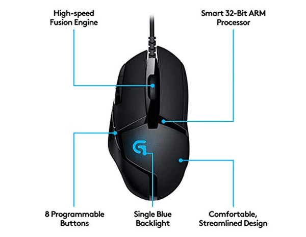 Logitech G402 Hyperion Fury thiết kế với 8 nút nhấn và người dùng có thể hoàn toàn tuỳ chỉnh chức năng riêng cho từng nút nhấn này thông qua phần mềm Logitech G Hub của hãng. Người dùng có thể gán từ lệnh ném lựu đạn, vào kho vũ khí,.. tất cả mọi chức năng đặc biệt bạn đều có thể gán lên các nút nhấn trên chuột.