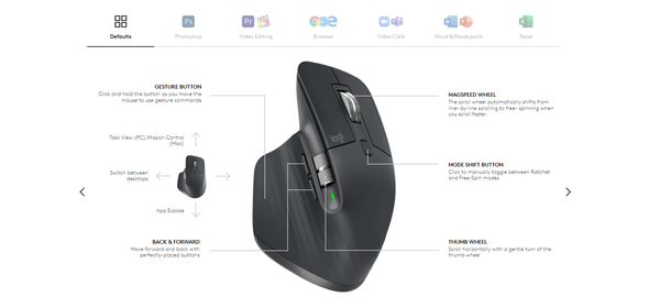 Ngoài khả năng tối ưu hóa cực tốt - Logitech MX Master 3 còn có khả năng tùy biến các nút trên chuột rất tốt cũng như thiết lập macro để có thể sử dụng 1 cách nhanh chóng nhất. Đặc biệt Logitech đã tối ưu hóa cho các ứng dụng, phần mềm phổ biến như Adobe Photoshop, MS Word, Excel,… hay các trình duyệt như Chrome, Safari, Opera,…