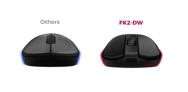 Phần lưng chuột FK thấp hơn so với các dòng chuột khác, tạo ra khoảng trống giữa lòng bàn tay và chuột, giúp dễ dàng thực hiện các điều chỉnh nhỏ khi nhắm vào kẻ địch ở khoảng cách xa hoặc theo dõi mục tiêu đang di chuyển.