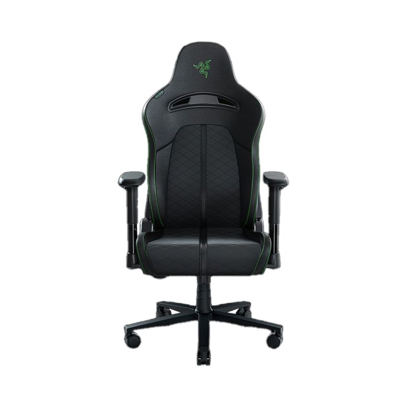 Enki X sở hữu tone màu xanh-đen đặc trưng của Razer cùng kiểu dáng tổng thể trông rất “đô con” và đậm chất game thủ. Nệm ghế dày đem lại cảm giác êm ái, phần ngả lưng được thiết kế đủ lớn để ôm trọn tấm lưng của người ngồi. Không thể thiếu lớp da vân rắn phần lưng ghế cùng kiểu dáng đua xe thời thượng làm cho mẫu gaming chair này thêm phần bắt mắt, toát đúng khí chất của Razer.