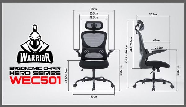 WARRIOR Hero series WEC501 đi kèm với các tính năng hỗ trợ nhằm cung cấp những tư thế ngồi tốt nhất, ổn định nhất và bảo vệ sức khỏe, đặc biệt là cột sống, vai, cổ khi làm việc trong thời gian dài.