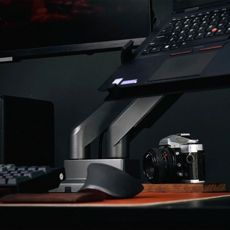 Một trong những vấn đề lớn khi làm việc với laptop là vị trí cố định, khiến người dùng thường phải cúi mặt xuống, gây mệt mỏi và khó chịu. Nhưng với giá treo laptop VESA HPW-LT01, bạn có thể gắn laptop lên monitor arm, tận dụng khả năng điều chỉnh linh hoạt để nâng hoặc hạ laptop đúng vị trí bạn mong muốn. Thiết kế tối giản màu dark grey thêm một chút sang trọng cho góc làm việc của bạn.