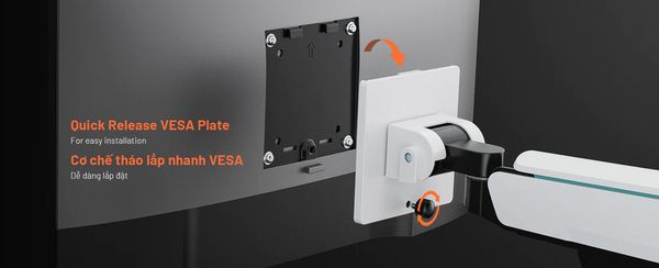 Giá đỡ màn hình Human Motion T9 Pro II được tích hợp cơ chế VESA giúp cho việc tháo lắp vô cùng dễ dàng.