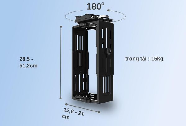 | Chiều ngang điều chỉnh | Min: 128 – Max: 210mm | Xoay | 180 Độ |