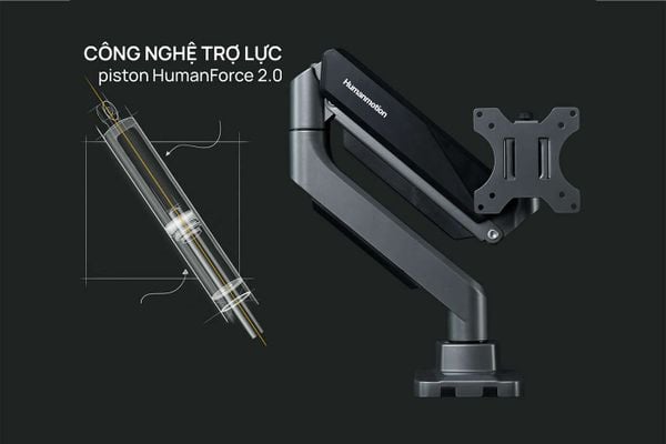 Không giống như các mẫu sản phẩm trước đến từ nhà Human Motion như T6 hay T7 được trang bị lò xo trợ lực, nhưng cho tới mẫu Human Motion T9-1H này thì hãng thay bằng piston giúp khả năng chịu lực của Arm màn hình lên đến 60%. Có thể bạn chưa biết, phần piston trợ lực này sử dụng công nghệ độc quyền Human Force 2.0 cho khả năng chịu lực tương đối tốt khi thao tác nâng - hạ màn hình diễn ra vô cùng dễ dàng. Arm màn hình Human Motion T9-1H là mẫu giá nâng hạ màn hình hướng tới đáp ứng cho những chiếc màn hình cỡ lớn nên khả năng chịu lực là vô cùng ấn tượng lên tới 15kg.