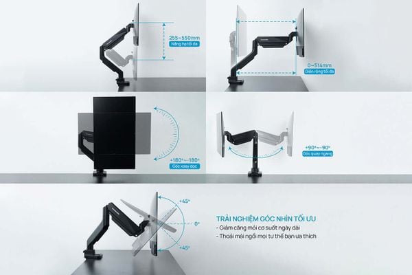 Thân giá treo còn tích hợp hệ thống dây cáp phía xung quanh, từ đó, giúp cố định monitor chắc chắn và tạo ra không gian làm việc, học tập thoải mái, rộng rãi hơn.