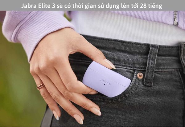 Tai nghe Jabra Elite 3 có thời lượng pin lên tới 7 giờ trong một lần sạc, hộp sạc đi kèm có thể sạc thêm 4 lần, nâng tổng thời gian sử dụng lên tới 28 tiếng. Ngoài ra, tai nghe còn có khả năng chống nước theo chuẩn IP55, giúp bảo vệ tai nghe khỏi những điều kiện môi trường khắc nghiệt.