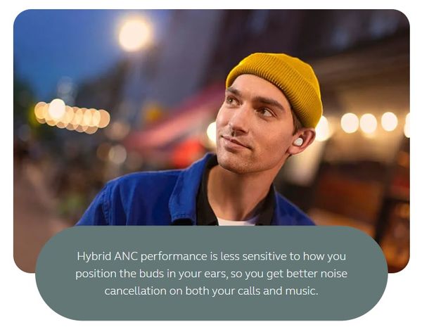 Không chỉ là một tai nghe không dây thông thường, Jabra Elite 5 còn được trang bị công nghệ Chống ồn chủ động kép Hybrid ANC. Với việc kết hợp micro hướng vào trong và ra ngoài ống tai, tai nghe hoàn toàn cô lập bạn khỏi môi trường xung quanh. Đi cùng với đó là công nghệ Xuyên âm HearThrough, giúp người dùng tiếp tục nhận biết được âm thanh xung quanh một cách tự nhiên nhất.
